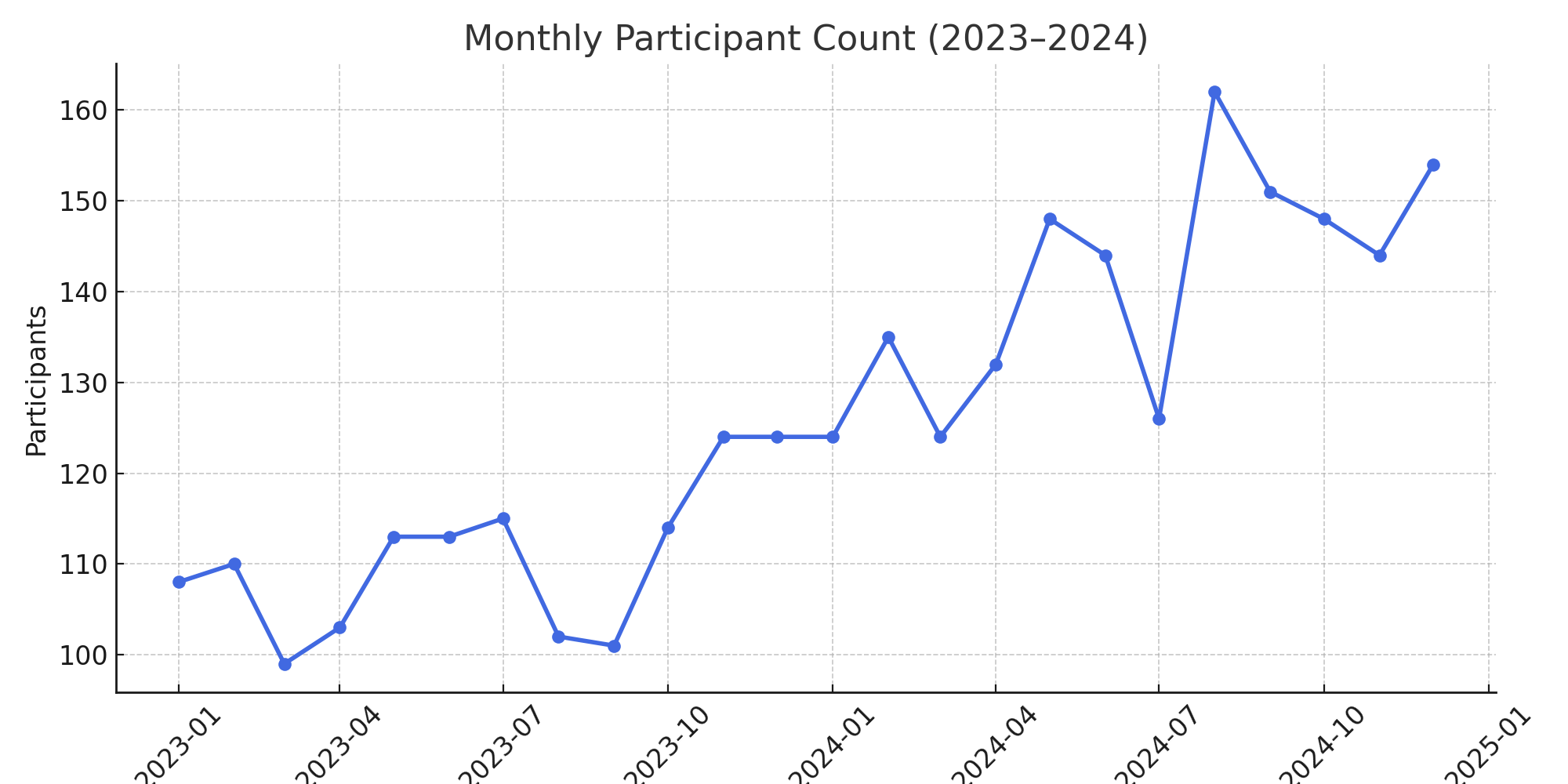 Using matplotlib, I created a simple time-series line plot showing trends across the research period: